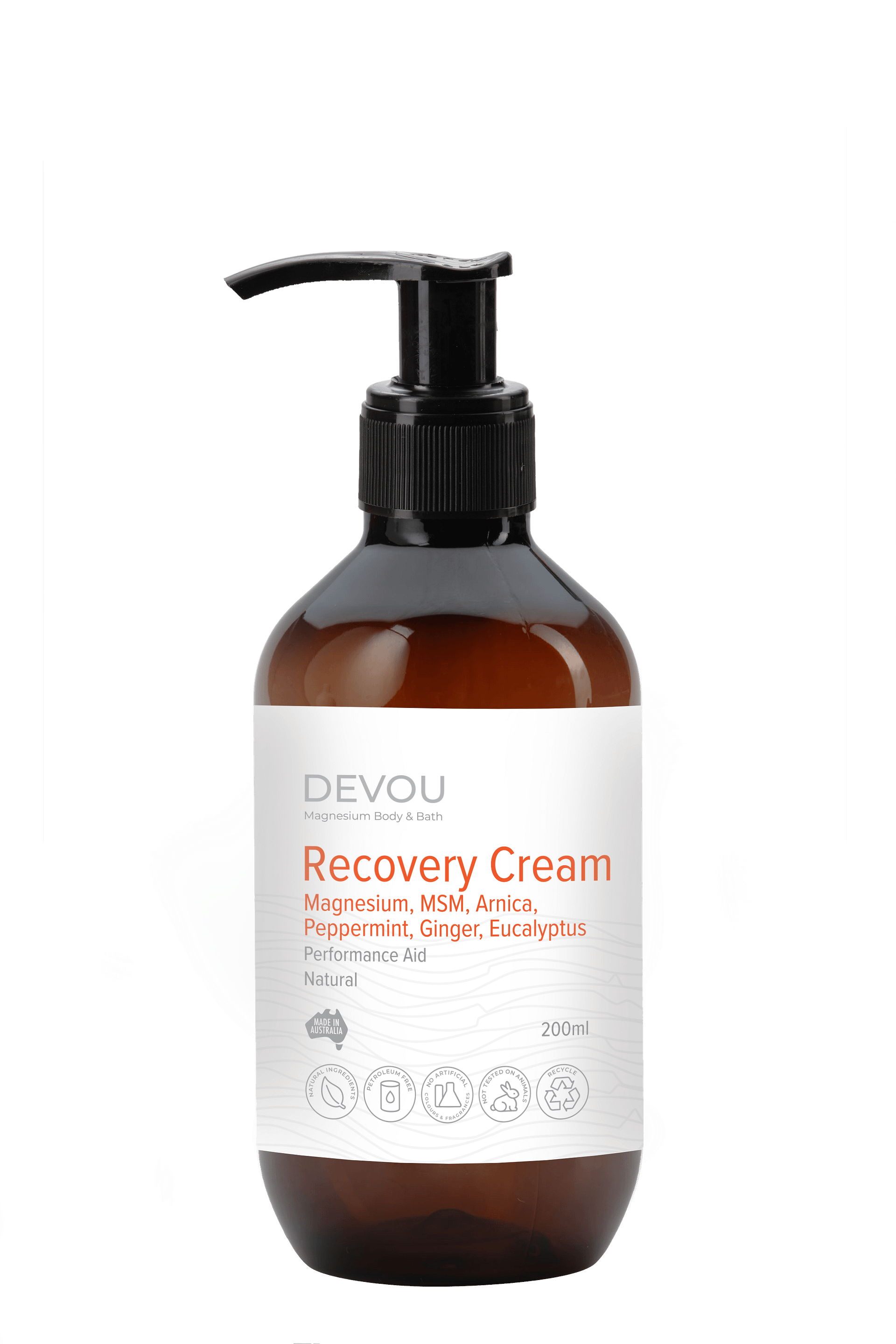 RECOVERY CREAM is a natural pain relief cream. Made from a unique blend of Magnesium Chloride, MSM, Arnica, Peppermint, Ginger and Eucalyptus that work together to provide fast, targeted and effective relief to all forms of muscular aches, pains and injuries.